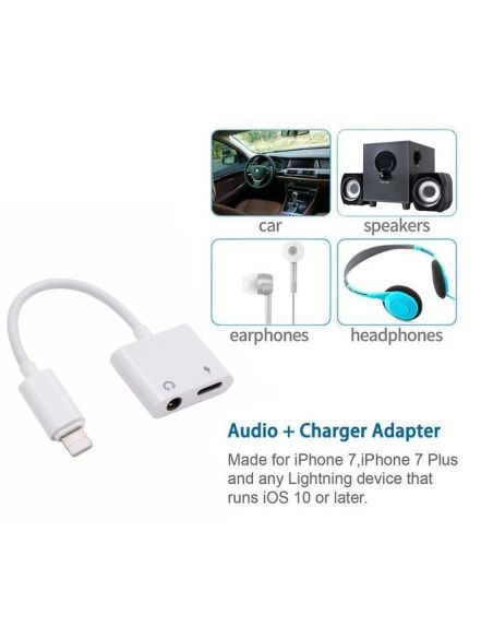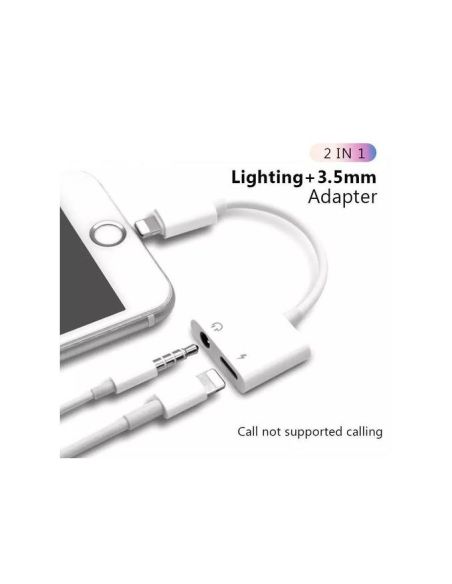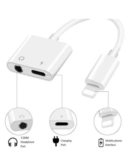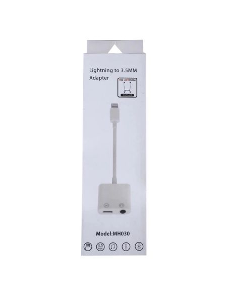 The MH-030 2-in-1 Adapter for iPhone, iPad, Splitter, 3.5mm Jack, Aux Cable, Earphones, Charging, Connector... This cable allows you to connect your favorite headphones to YOUR IPHONE AND CHARGE IT.