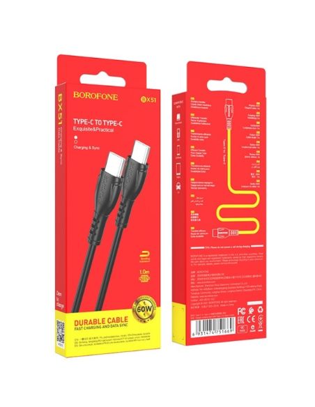 Borofone BX51 - Câble Super Fast Type-C vers Type-C 60W - Noir