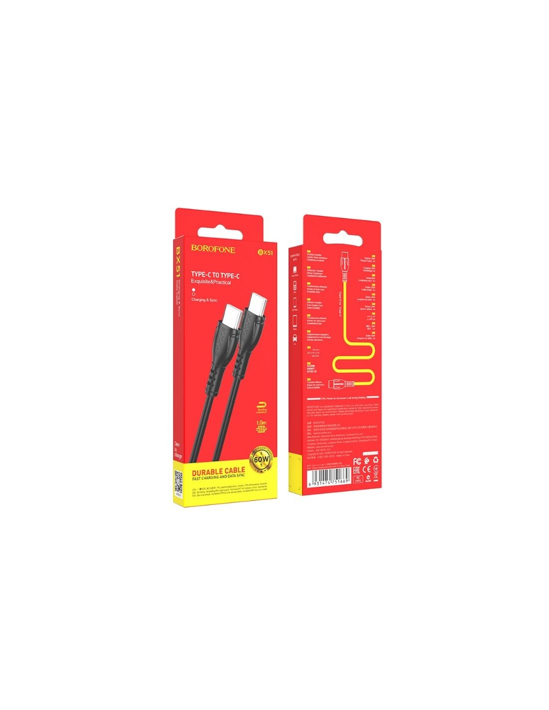 Borofone BX51 Type-C vers Type-C 60W pour une prise en charge de la charge SUPER Rapide. Parfait pour renouveler l’énergie des appareils mobiles tels que les smartphones ou les tablettes. Fabriqué dans un matériau durable et résistant aux dommages qui garantit une utilisation longue et sûre, La conception spéciale de la fiche augmente la résistance à la flexion du câble pour éviter qu’il ne se casse, La prise en charge de la charge rapide Power Delivery (60 W) vous permettra de restaurer l’énergie de l’appareil en peu de temps, La prise en charge de Power Delivery rend le câble idéal pour les smartphones, les tablettes et les ordinateurs portables qui prennent en charge la charge USB de type C.