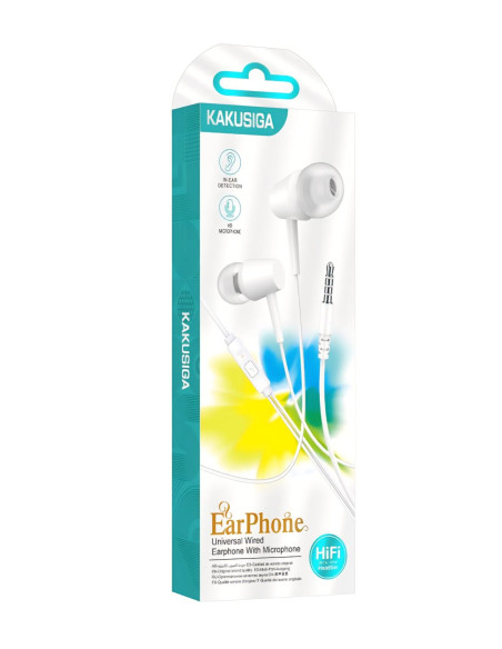 Écouteurs KAKUSIGA avec microphone KSC-1303 connexion 3,5 mm, 10mm, 1,1m, Blanc