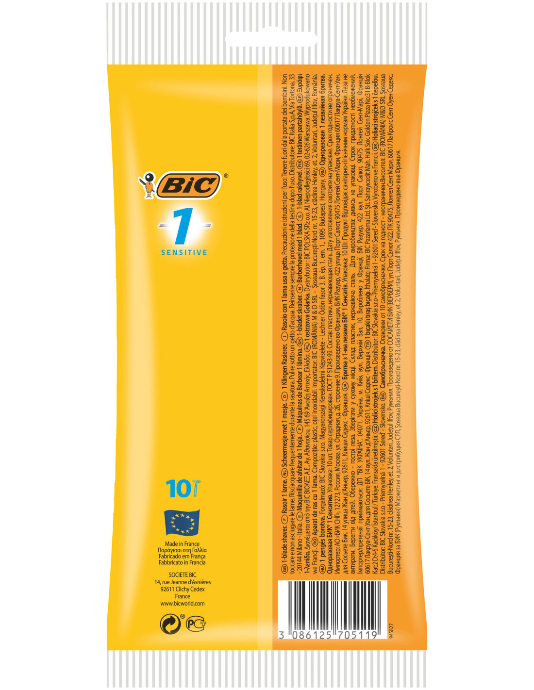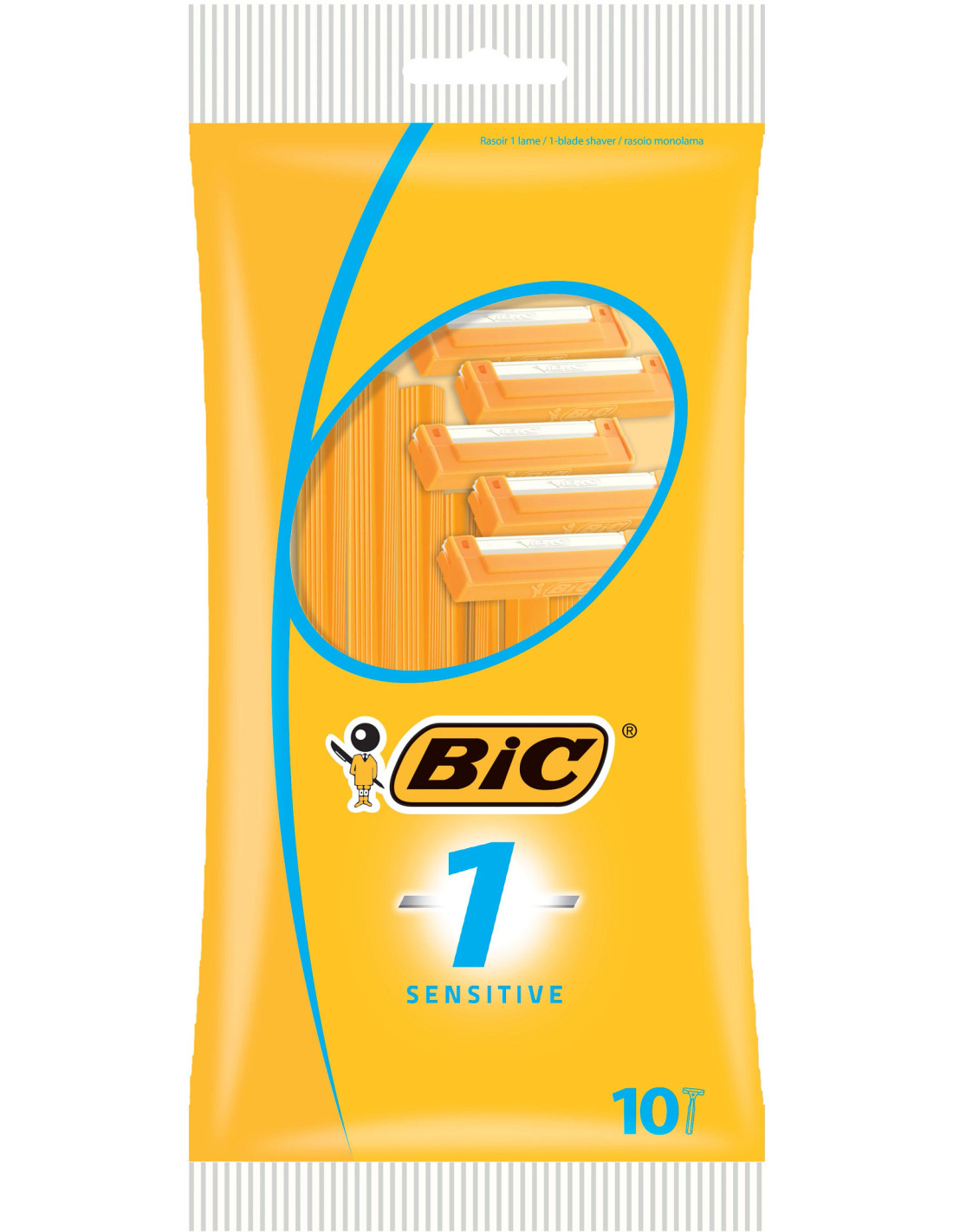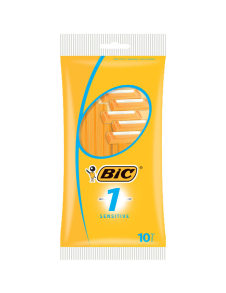 BIC1 Sensitive, Rasoir Jetable pour Homme doté d’une Lame en Acier Inoxydable - Pochette de 10