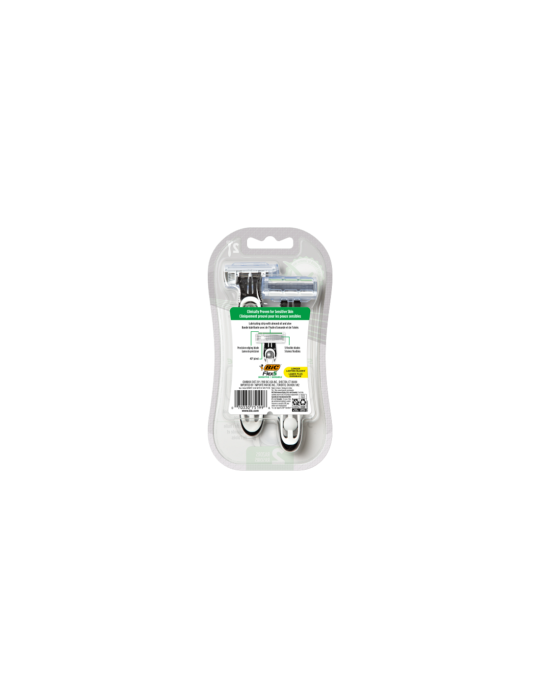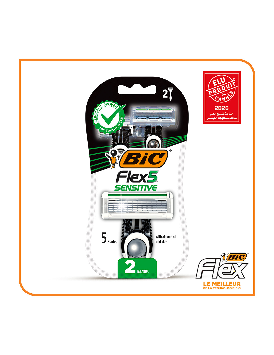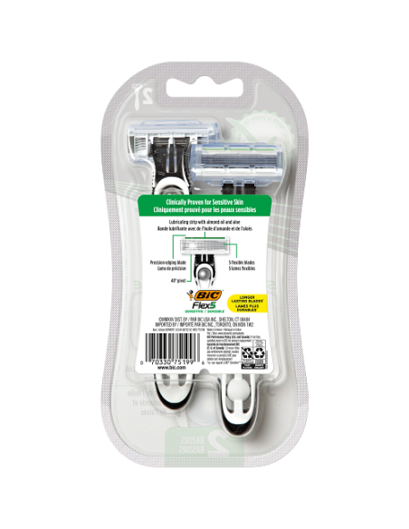 Le nouveau rasoir non rechargeable BIC Flex 5 Sensitive vous offre le rasage BIC parfait et a été spécialement conçu pour les peaux sensibles. Doté d'une bande lubrifiante, il est cliniquement prouvé pour les peaux sensibles et contribue à les protéger contre les irritations ! Les 5 lames mobiles permettent un rasage ultra-précis et la lame de précision est idéale pour définir et styliser votre barbe, permettant d'atteindre facilement les zones difficiles d'accès comme le dessous du nez. Sa tête pivotante à 40° s'adapte aux contours de votre visage pour un rasage doux et confortable.