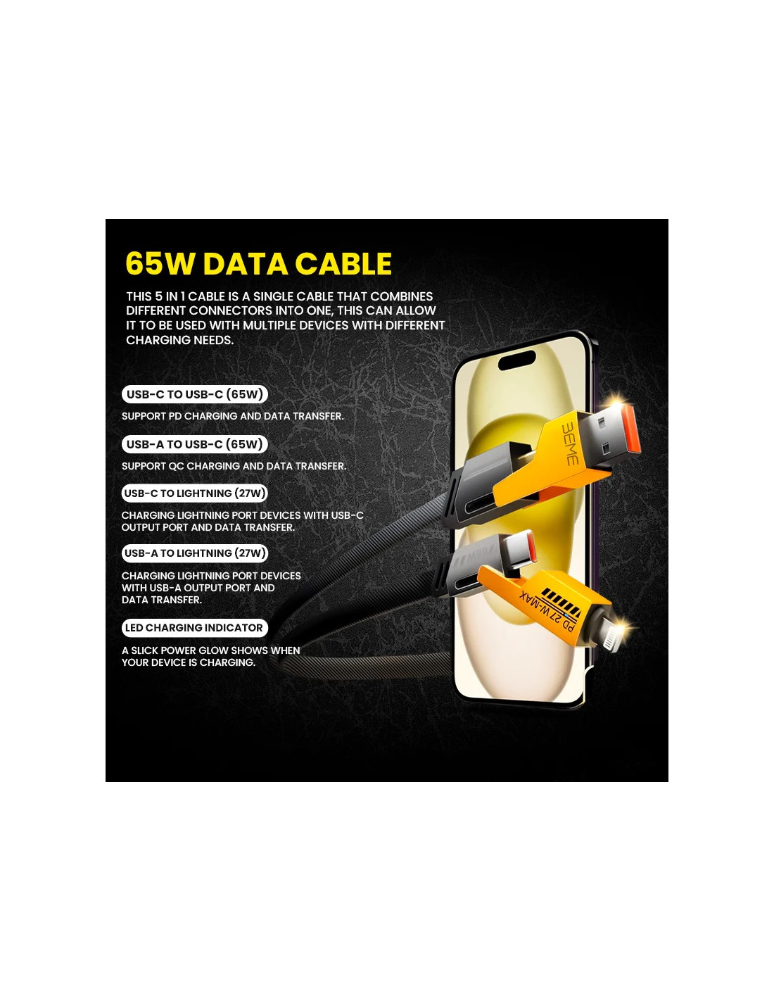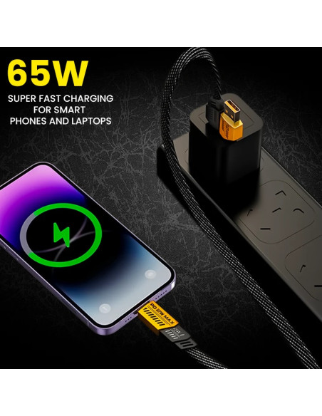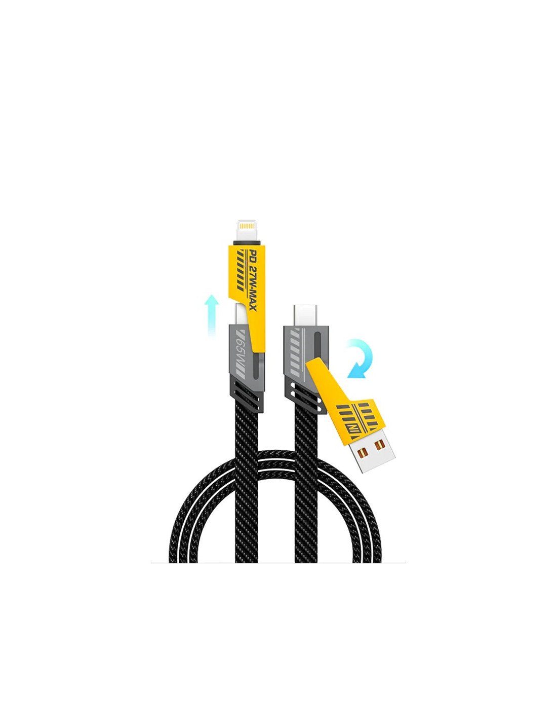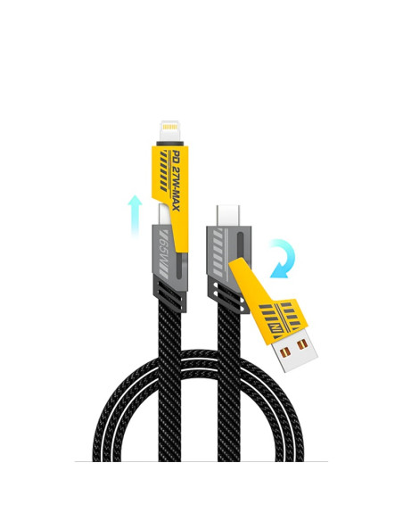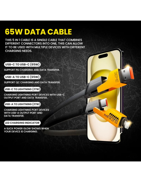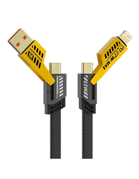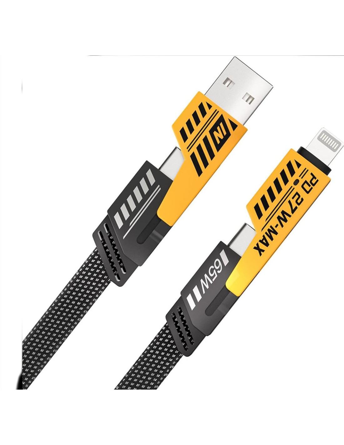 offre une solution pratique pour charger plusieurs appareils simultanément à l’aide d’un seul câble. Équipé de connecteurs Lightning, USB-C et USB-A, ce câble élimine le besoin de transporter plusieurs chargeurs, ce qui le rend parfait pour la maison, le bureau ou les voyages.