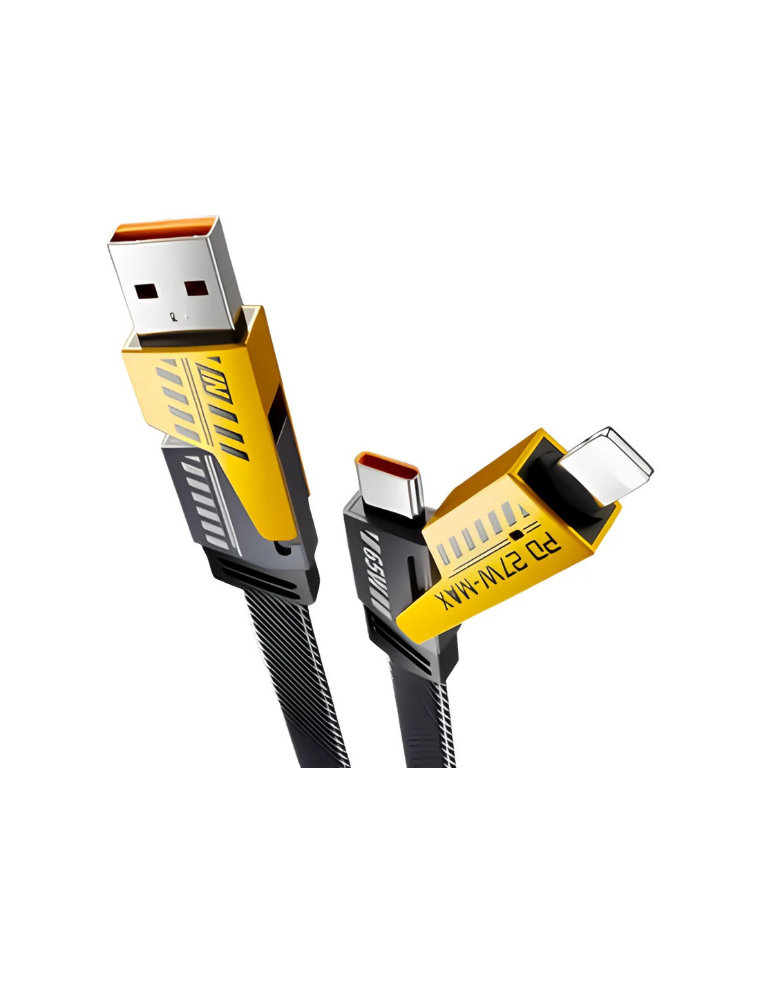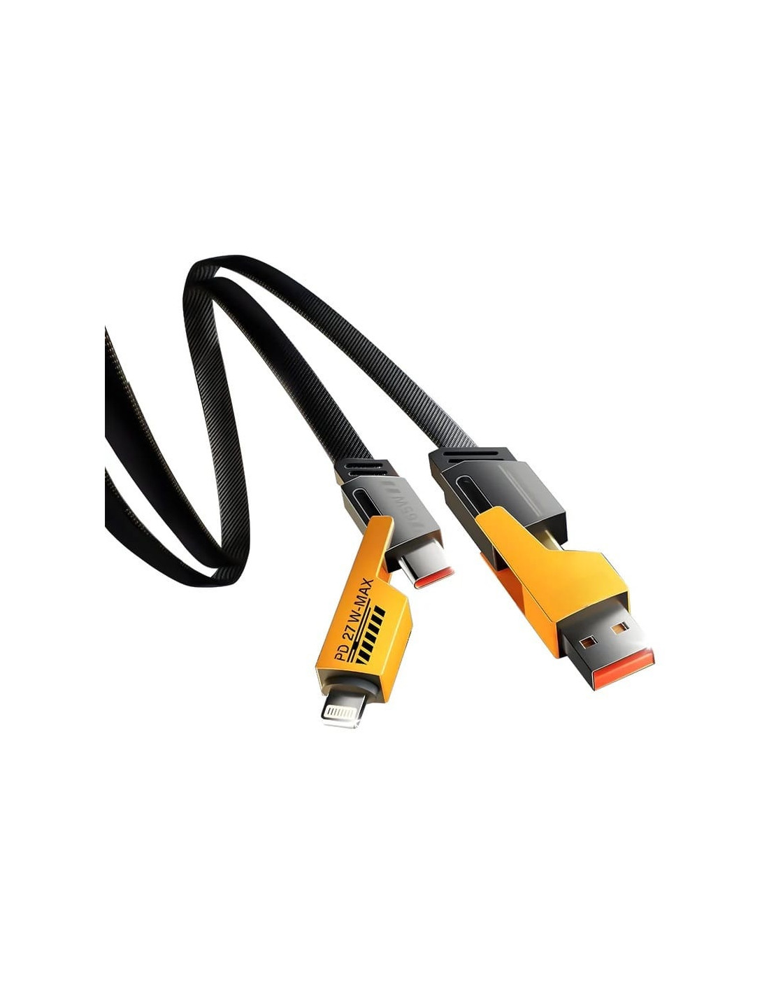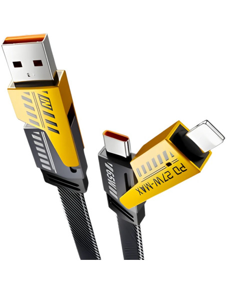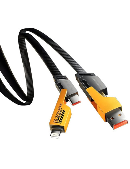 Le câble de charge multiple 4 en 1 est un accessoire pratique et polyvalent, idéal pour recharger et synchroniser plusieurs appareils avec un seul câble. D’une longueur de 1,2 mètre, il offre un excellent confort d’utilisation à la maison, au bureau ou en déplacement. Équipé de connecteurs Lightning, USB Type-C et USB-A, il est compatible avec une large gamme de smartphones, tablettes et autres appareils électroniques. Fabriqué en TPE de haute qualité, ce câble assure une grande flexibilité, une bonne résistance à l’usure et une durabilité accrue. Son design sobre en couleur noire s’adapte parfaitement à tous les environnements, faisant de ce câble une solution fiable et efficace pour un usage quotidien.