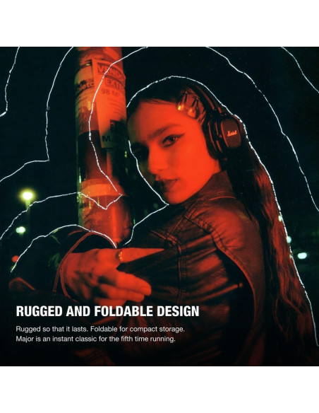 Avec plus de 100 h d’autonomie, profitez de la liberté toujours en musique. Et vous ne tarderez pas à repartir, car le Major V dispose de l’option de charge rapide.