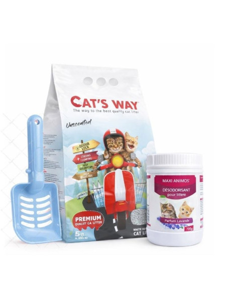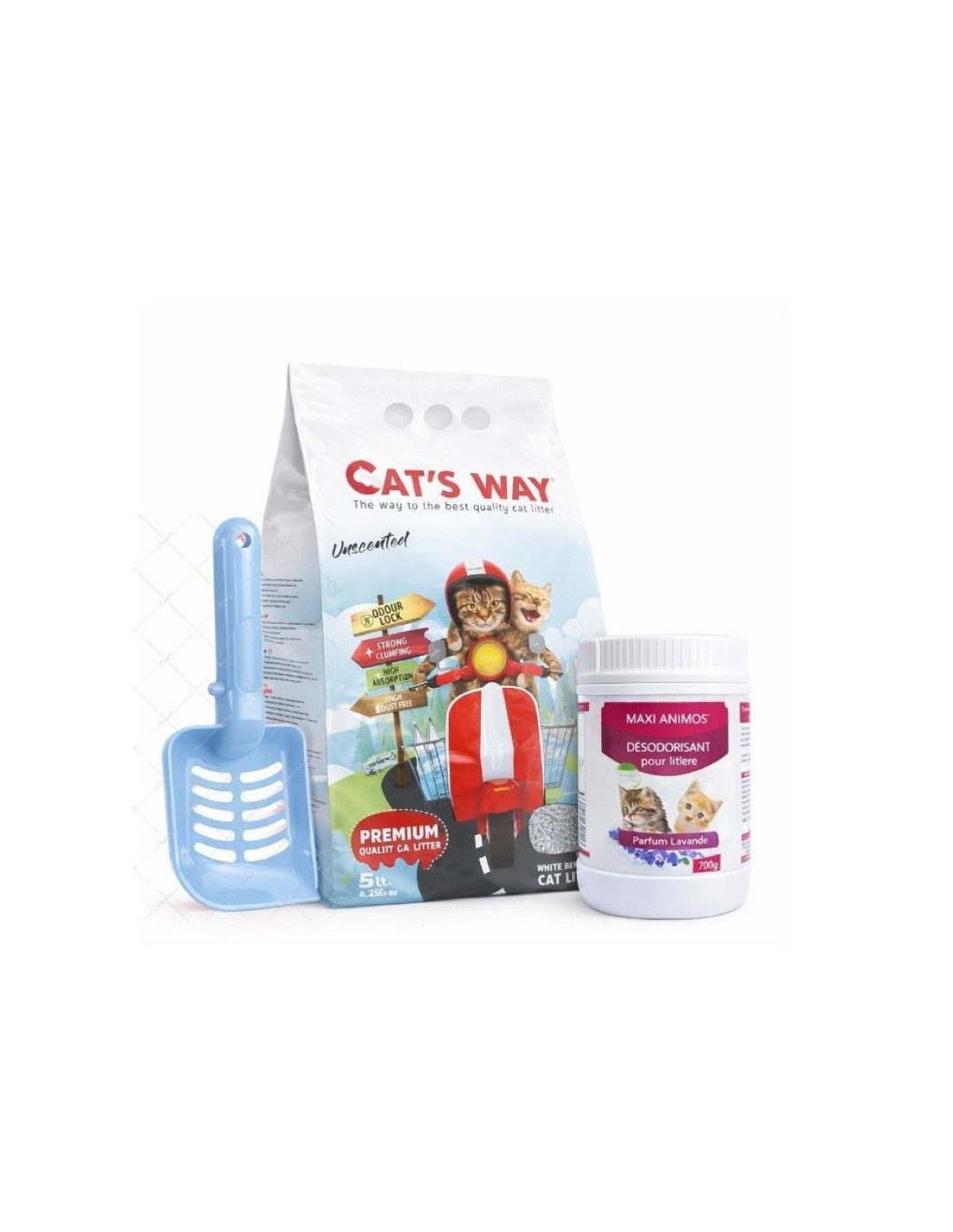 Pack de toilette pour chat:Litiére Catsway Naturel 5l & Désodorisant pour litière& Pelle simple: