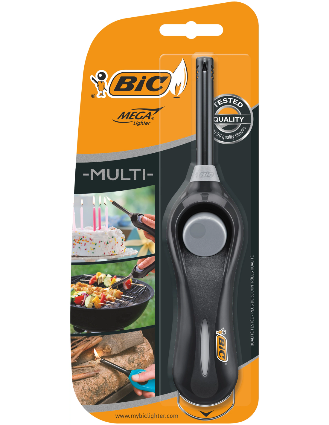 Le briquet utilitaire BIC Megalighter Design assure un allumage sûr et polyvalent pour l'intérieur comme l'extérieur, grâce à son tube de 6 cm et sa flamme stable garantissant jusqu'à 750 allumages. Conçu pour une prise en main confortable avec un gros bouton-poussoir facile d'utilisation, il intègre un hublot pour vérifier le niveau de gaz et un crochet rétractable pour un rangement aisé. Ce petit briquet domestique incarne l'expertise de BIC, offrant fiabilité et qualité reconnues.