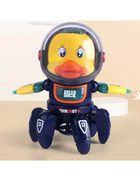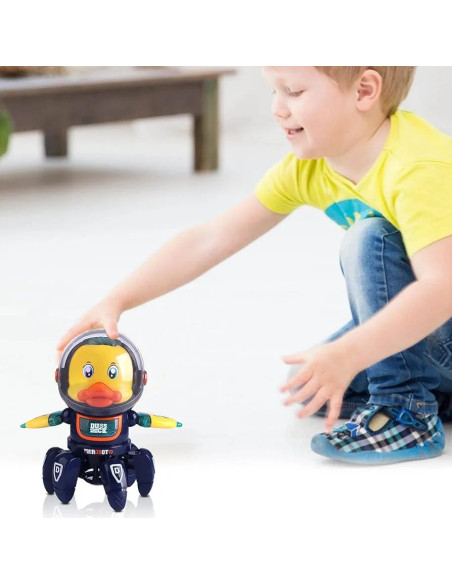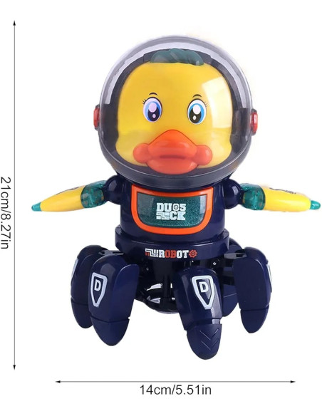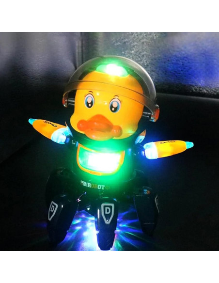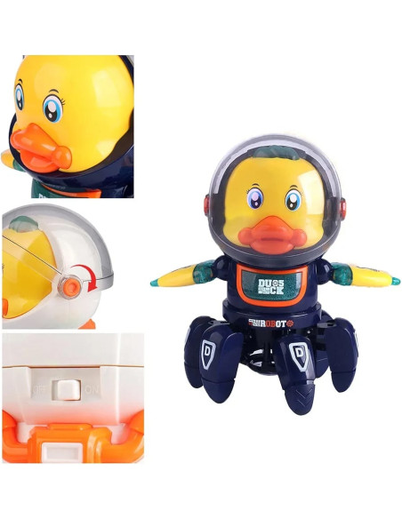 Fonctionnalités : Il émet des sons et des lumières, peut avancer, reculer, et danser en remuant la taille.