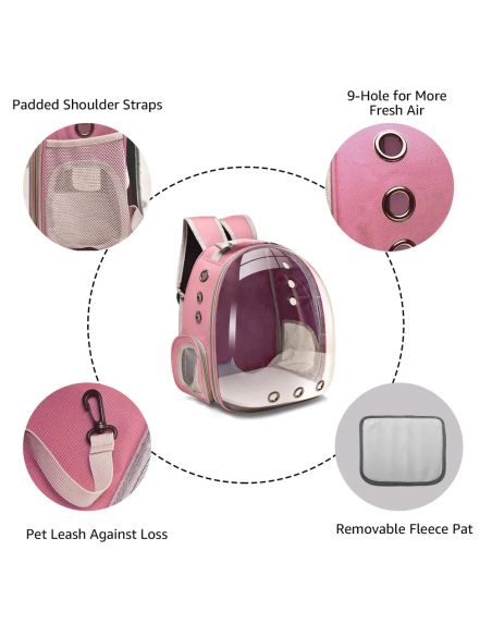 Buy Transparent Pink Backpack for Pets - Panoramic View, Ventilated, Space Capsule Style for Cats, Dogs, and Rabbits in Tunisia at the best price | Twenty
