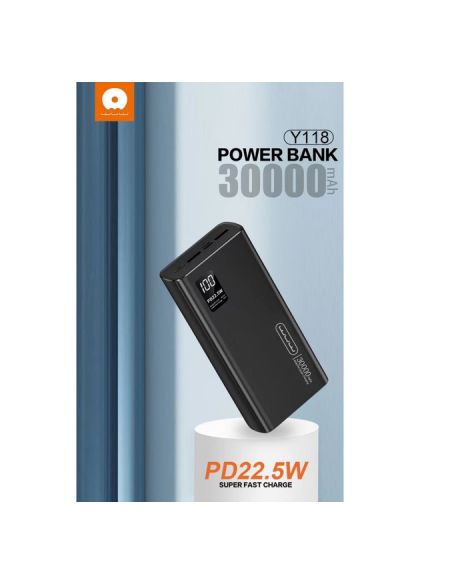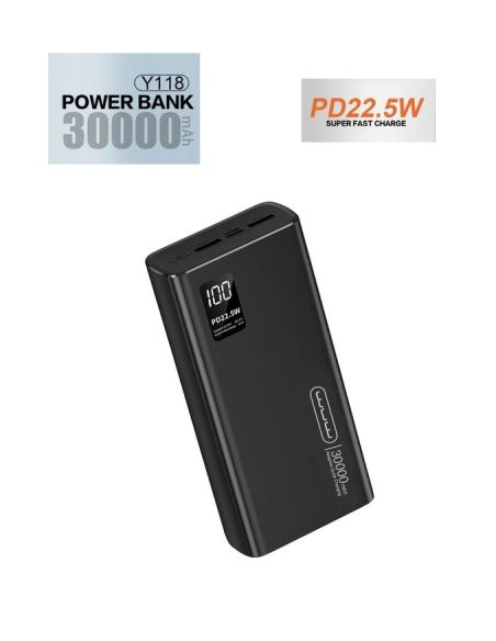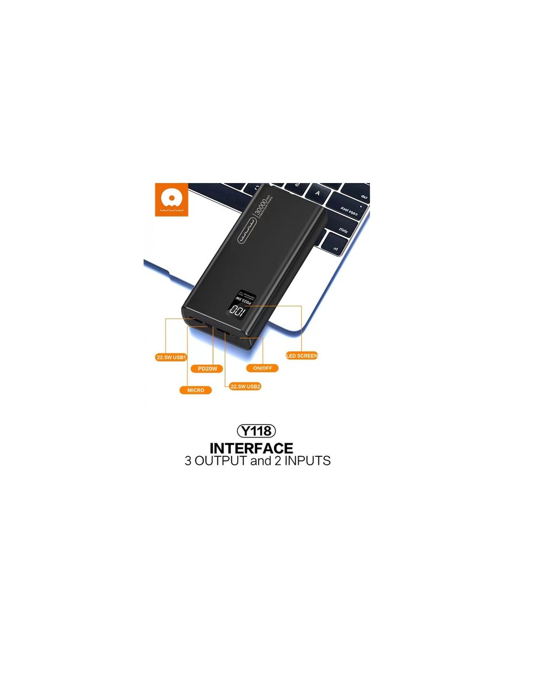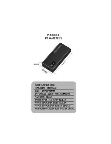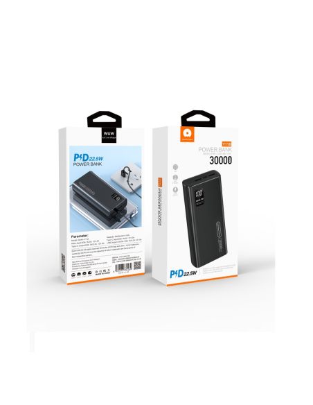 WUW Y118 Power Bank 30000mAh PD20W + QC3.0 22.5W 2USB avec Affichage LED