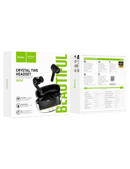 EW54 Rayo, casque TWS, BT v5.3, batterie de boîtier de charge 300mAh, batterie casque 30mAh, 4 heures d’utilisation et 150 heures en veille