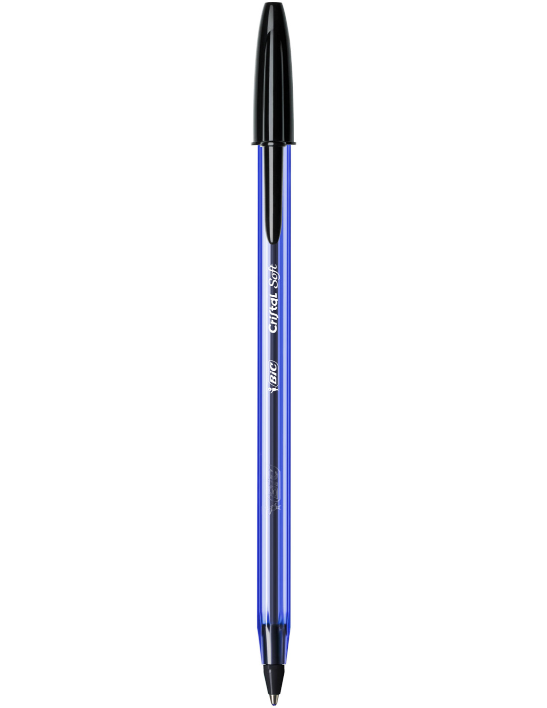 Le stylo BIC Cristal Soft a un système d'encre «Easy Glide» qui rend l'écriture 35% plus douce que la plupart des stylos-bille usuels Sa pointe large de 1,2mm (pour une largeur de trait moyenne de 0,35mm) permet une écriture fluide et facile Son corps reste toujours bleu ciel, même s'il se décline en 4 couleurs d'encre (rouge, vert, noir et bleu), capuchon et embout assortis Son joli design hexagonal est emblématique de la marque: un stylo BIC, un vrai Pratique et esthétique, son corps bleu transparent laisse voir le niveau d'encre