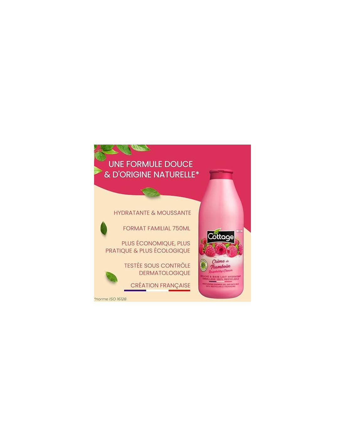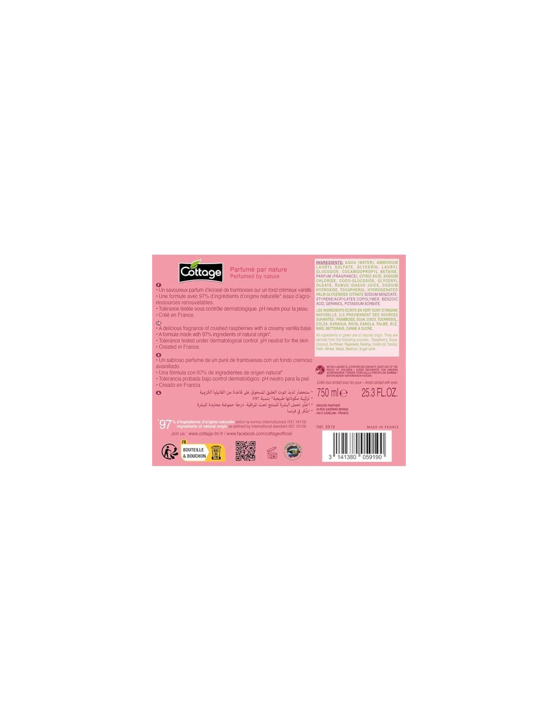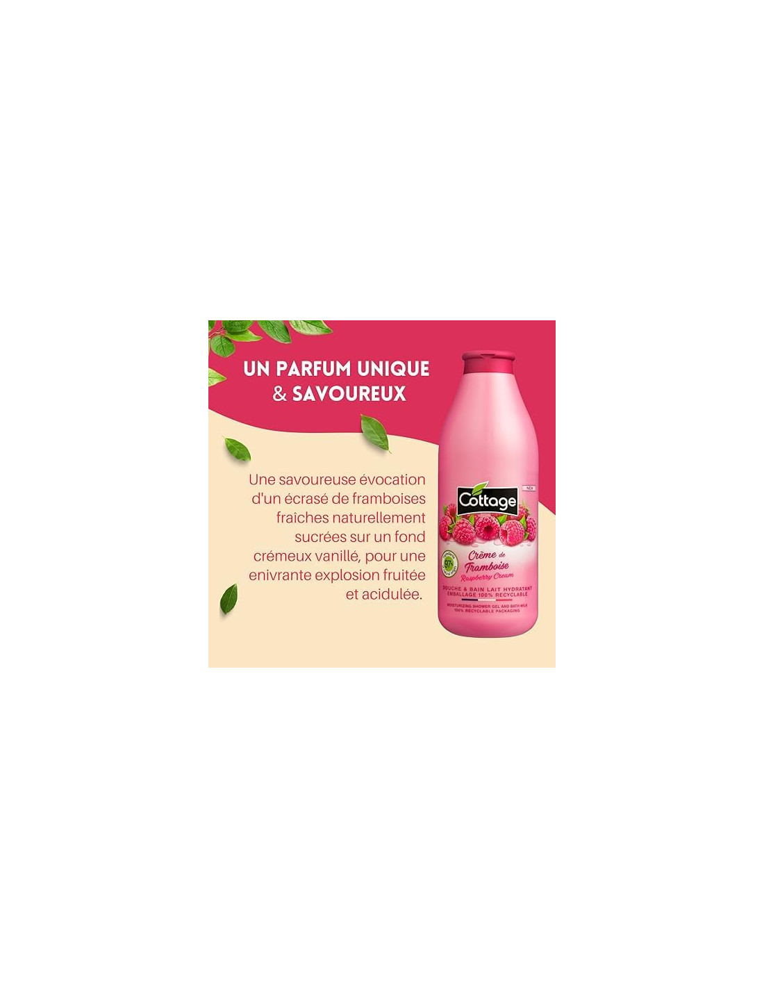 Une explosion fruitée et acidulée mêlant framboises fraîches et fond crémeux vanillé pour un moment gourmand. Formule à 97 % d’ingrédients naturels, pH neutre, biodégradable, format familial, fabriqué en France.