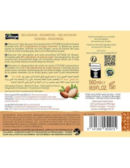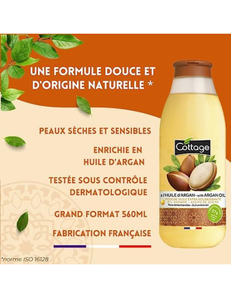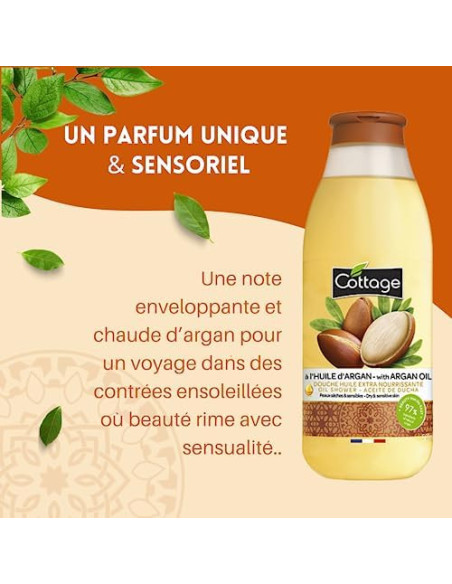 Une huile de douche précieuse à l’huile d’argan pour une nutrition intense et un parfum oriental. Formule à 97 % d’ingrédients naturels, pH neutre, biodégradable, fabriquée en France.