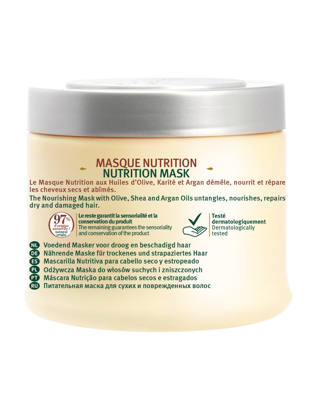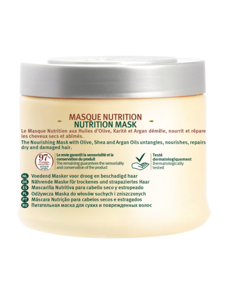 Ce masque capillaire ultra-soin réunit le pouvoir nourrissant de l’huile d’olive, la richesse réparatrice du beurre de karité et la douceur de l’huile d’argan. Il démêle, nourrit en profondeur et répare les fibres des cheveux secs ou abîmés, révélant une chevelure douce, souple et ressourcée.