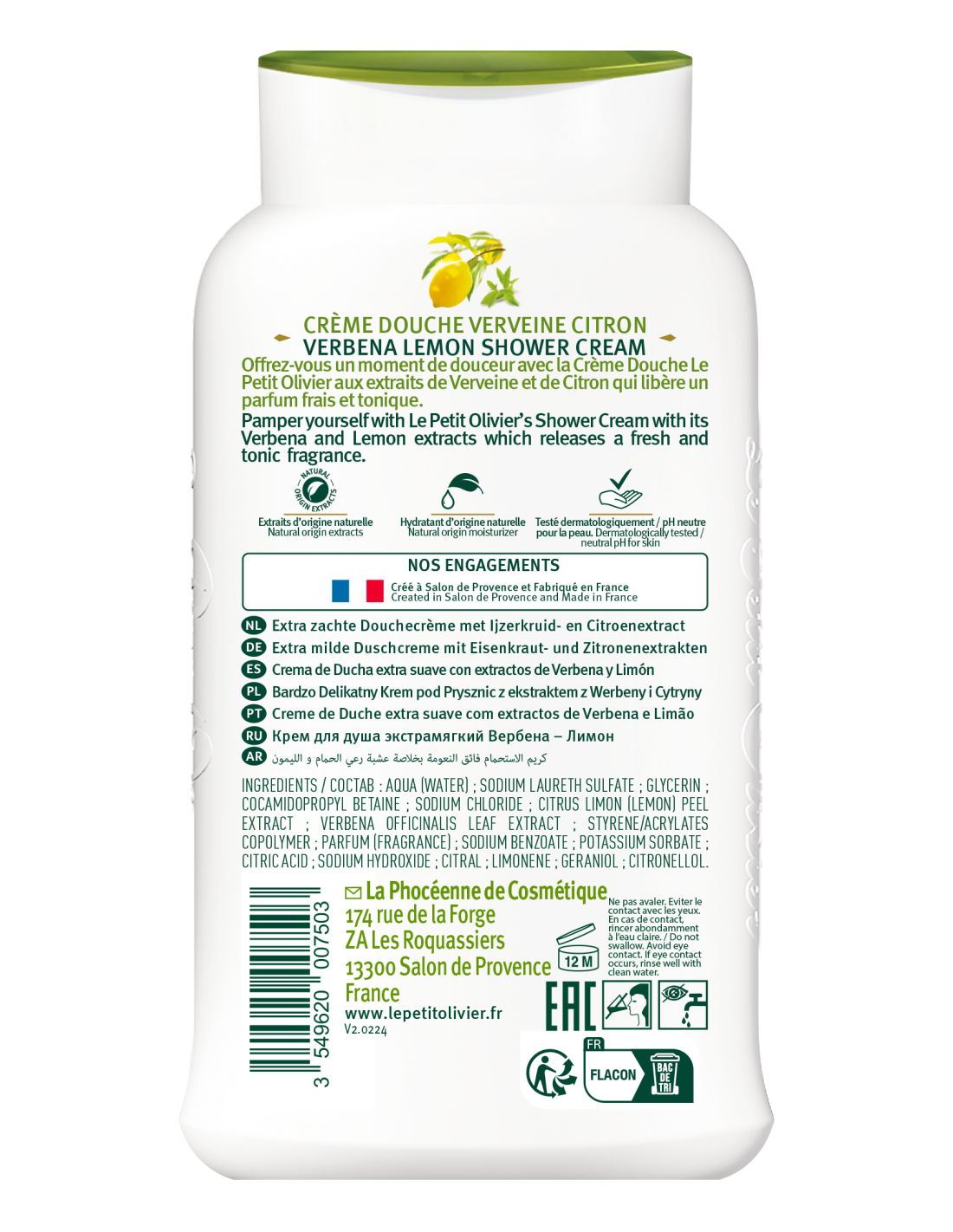 Nettoie délicatement et laisse un parfum frais et tonique de verveine et citron. Idéal pour démarrer la journée avec énergie