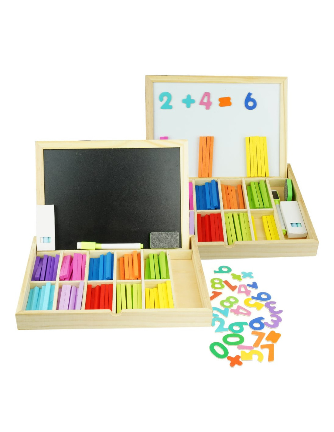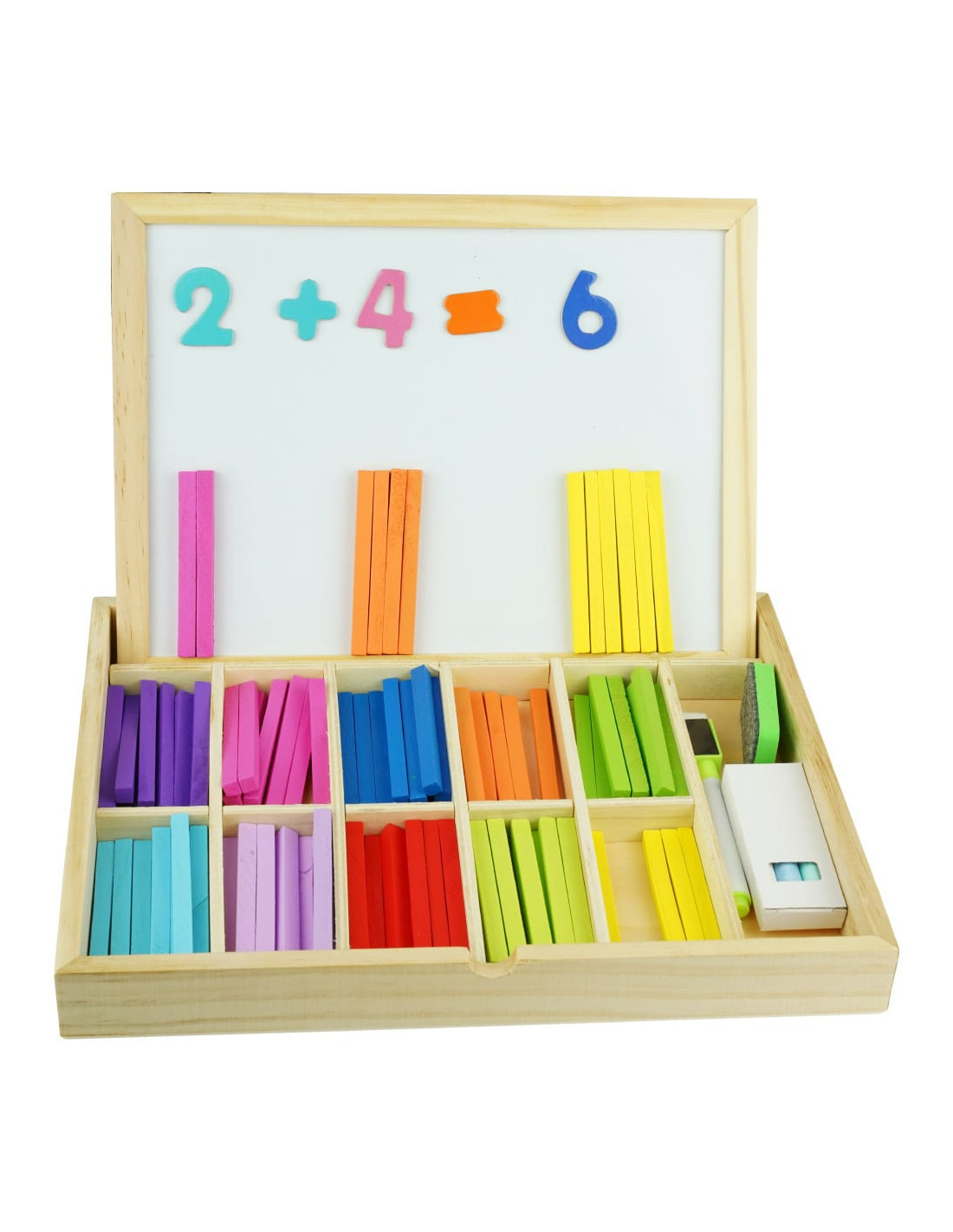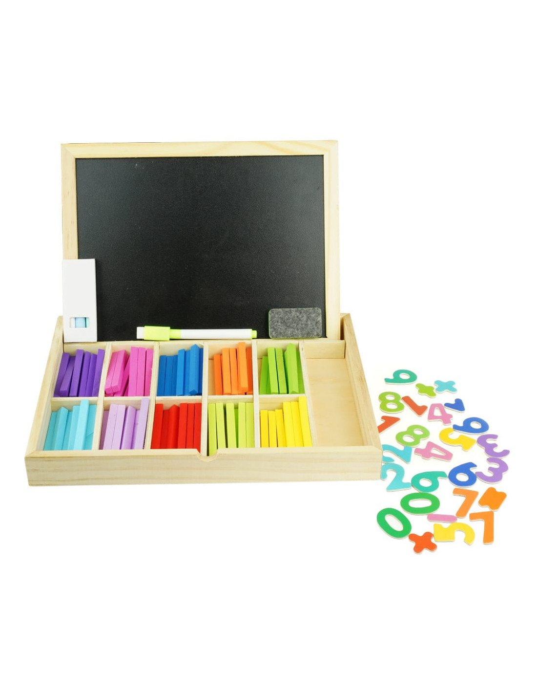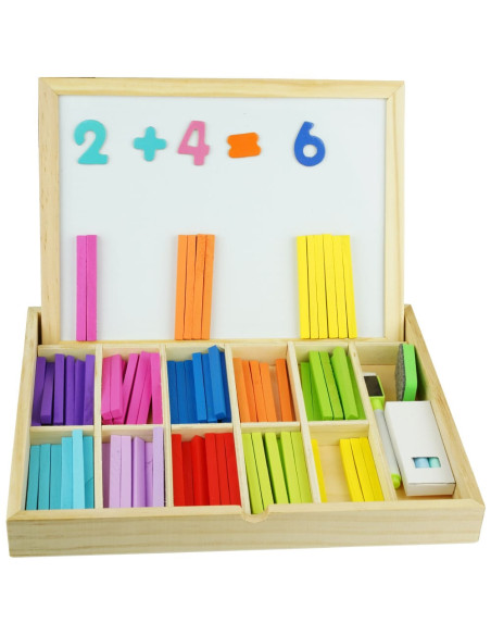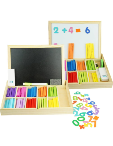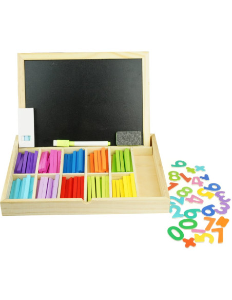 Comprend des bâtons de comptage colorés et un tableau noir.