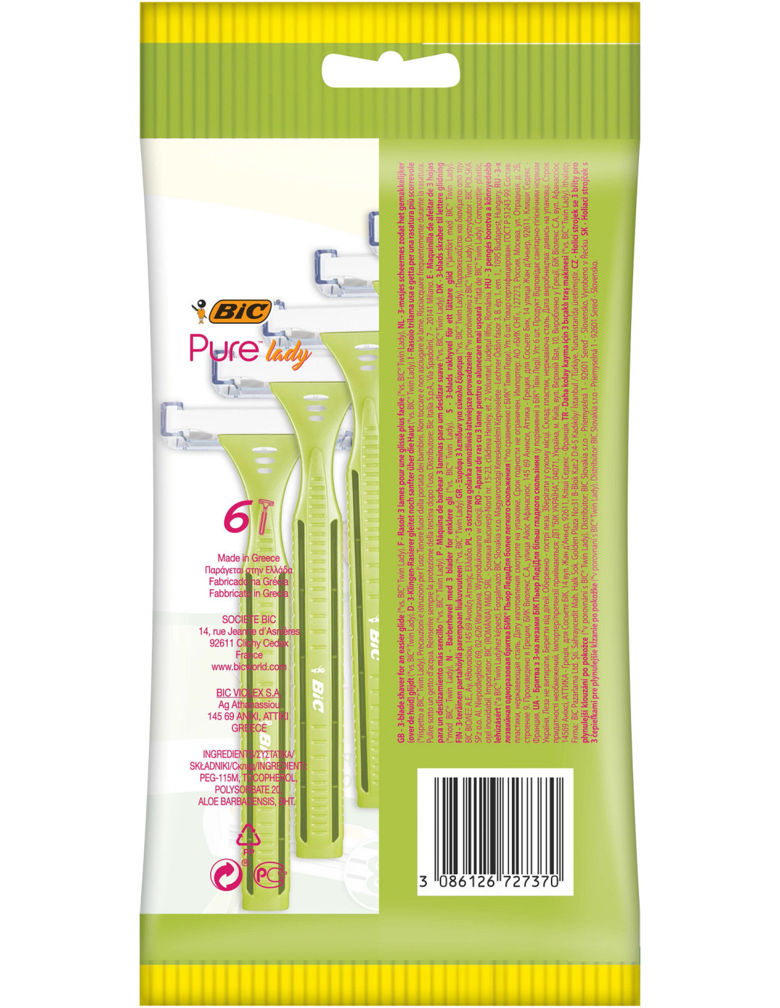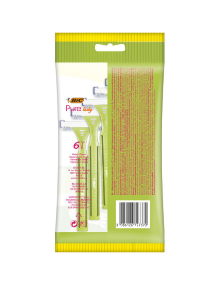 Le rasoir BIC Pure Lady est conçu pour un rasage efficace grâce à ses 3 lames en acier inoxydable. Ce rasoir non rechargeable est le choix idéal pour un rasage doux en toute confiance sur tout le corps. La bande lubrifiante enrichie en extrait d’aloe vera permet une glisse douce sur la peau. Fabriqué en Europe.