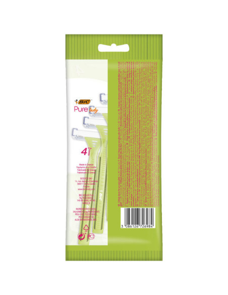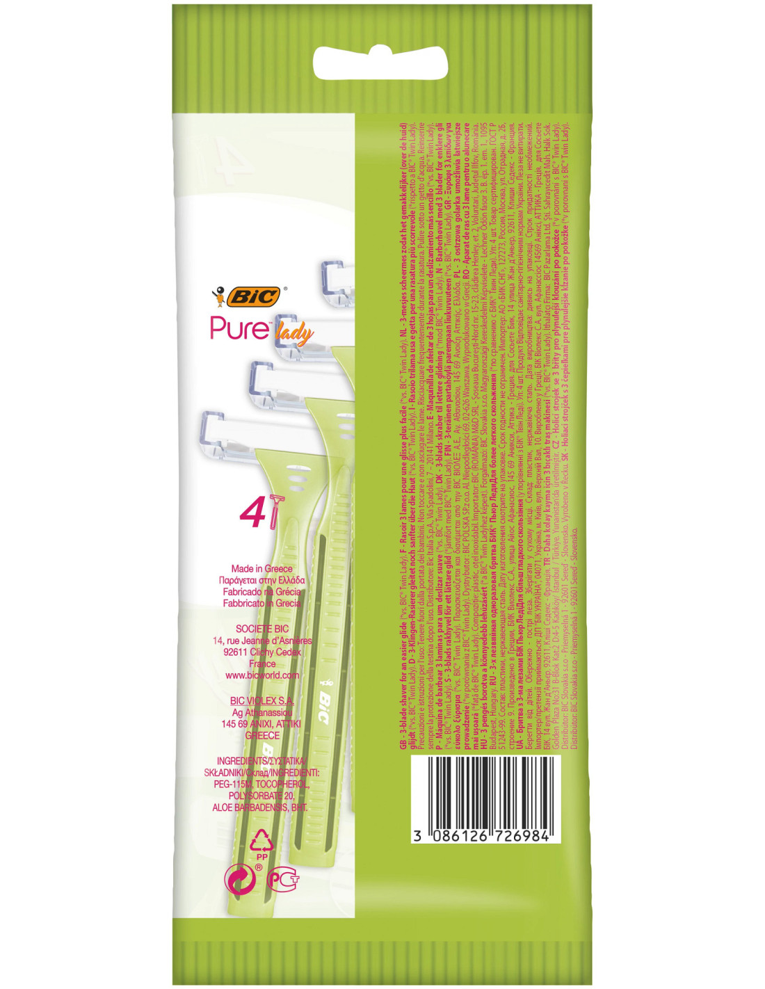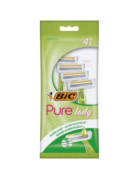 BIC Pure Lady - Rasoirs jetables femme à 3 lames de qualité en acier inoxydable et bande lubrifiante enrichie en extrait d’aloe