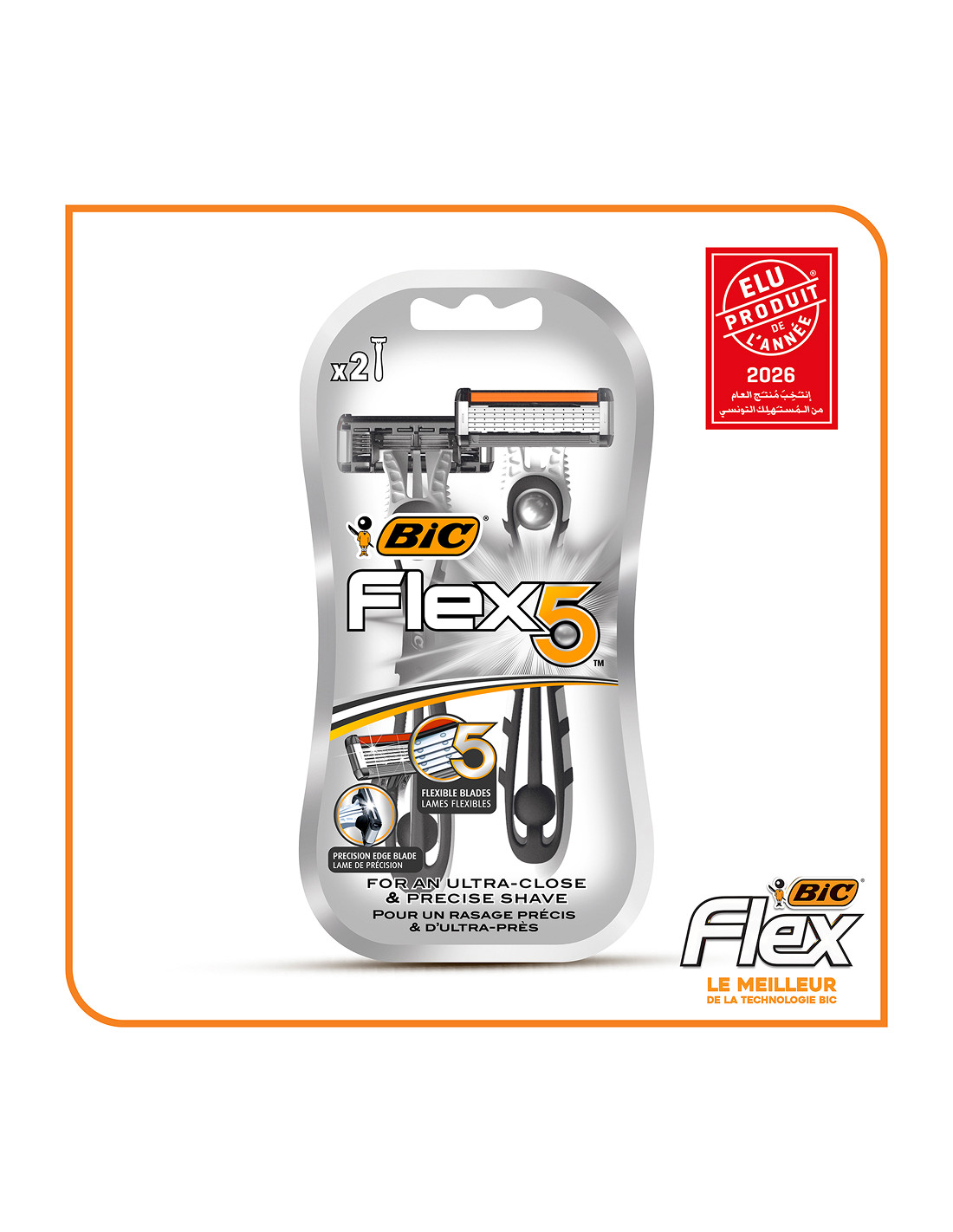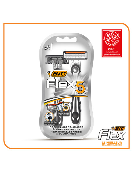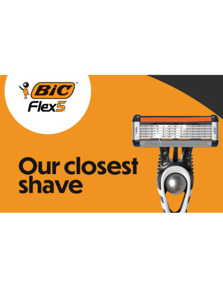 BIC Flex 5 offre un rasage ultra-performant et précis. Chacune des cinq lames nano-technologie mobiles, montées individuellement sur ressorts, épouse les contours du visage et soulève chaque poil pour un rasage ultra-précis et un nettoyage facile.