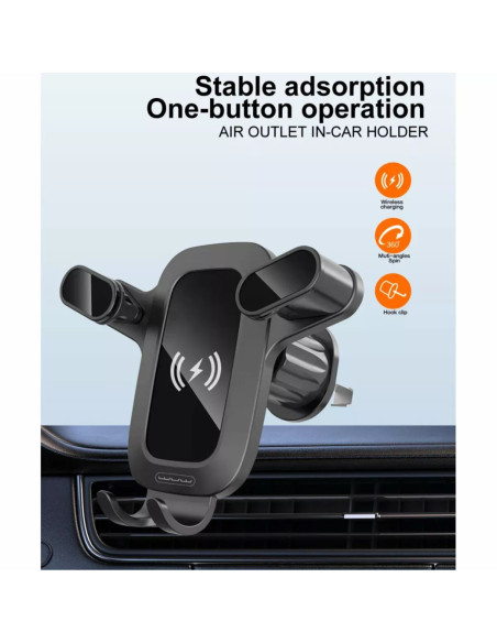 Il y a une situation : vous conduisez pour affaires, et le téléphone est déchargé juste devant vos yeux. Avec le support WUW Z29, vous oublierez ce problème. L’appareil prend en charge la recharge sans fil d’une puissance allant jusqu’à 15W, adaptée à la plupart des smartphones modernes - Android et iOS. Il suffit d’insérer le téléphone dans le support – la charge a commencé automatiquement, sans câbles ni tracas inutiles. Plus de distractions avec les fils et de recherche de connecteurs en conduisant.
