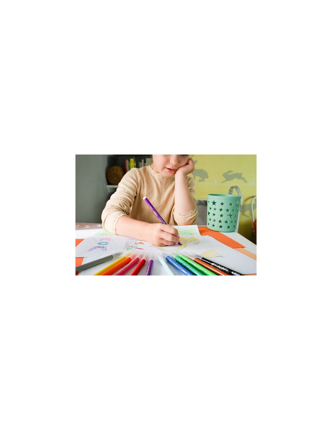Les feutres BIC Kids Kid Couleur à base d’eau sont très faciles à laver sur les mains comme sur la plupart des tissus Avec 36 couleurs assorties et éclatantes, ils peuvent créer des œuvres d'art multicolores Conçus avec une pointe moyenne bloquée qui résiste à la pression Ces feutres ont été pensés pour l’utilisation quotidienne des enfants dès l’âge de 5 ans La pointe moyenne permet une couvrance facile et une bonne précision pour aider à développer les talents en coloriage