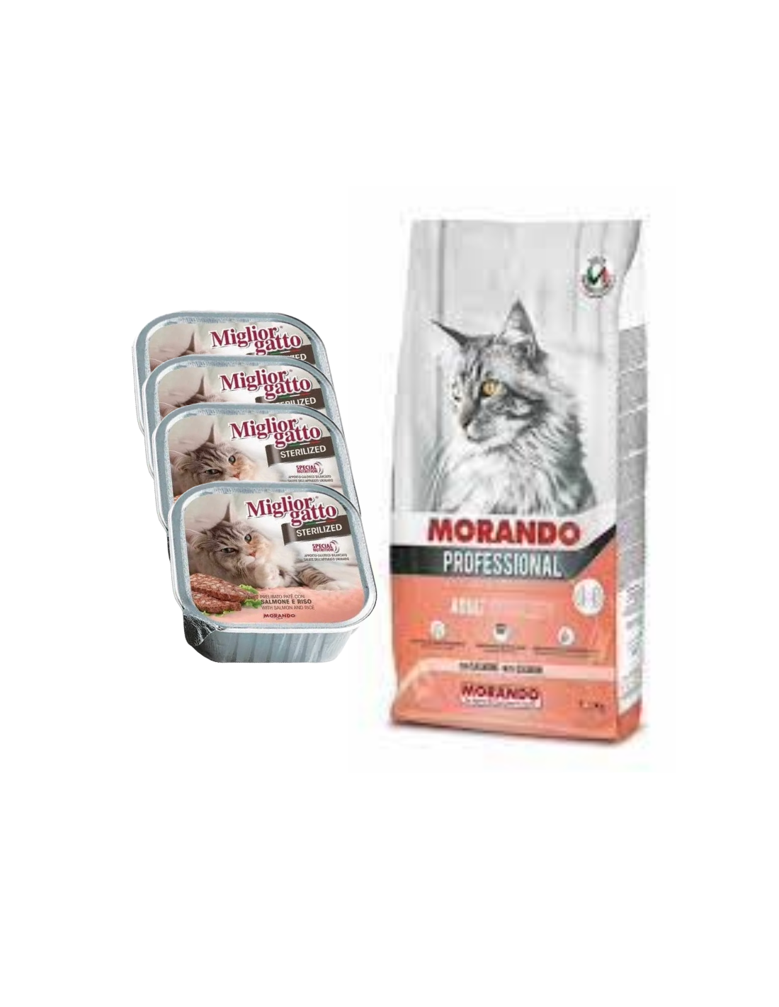Pack Pour Chat Stérilisé : Croquette Morando Au Saumon +4 Barquettes Miglior Gatto Au Saumon