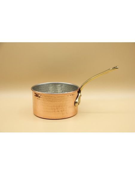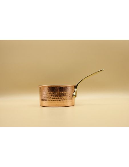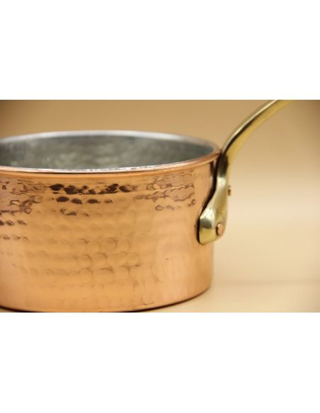 Casserole en cuivre martelé totalement fait main diamètre 16cm.