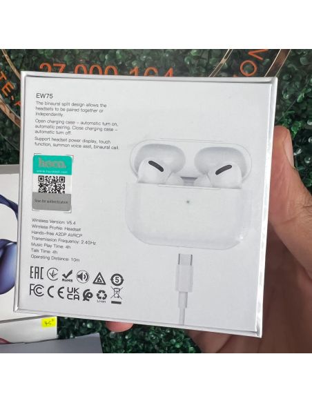 Écouteurs Sans Fil HOCO EW75 Anti-bruit - Technologie de connectivité: Bluetooth 5.4 - Réponse en Fréquence: 20 Hz à 20 Khz - Impédance: 32 ohms - Capacité de la batterie: 30 mAh (écouteur), 300 mAh (boîtier de charge) - Autonomie de la batterie: jusqu'à 4 heures- Temps de charge: 1.5 Heures - Distance de Fonctionnement Sans Fil: Jusqu'à 10 Mètres - Dimensions: 60.6 × 45.2 × 21.7 mm - poids: 30 gr - Couleur: Blanc