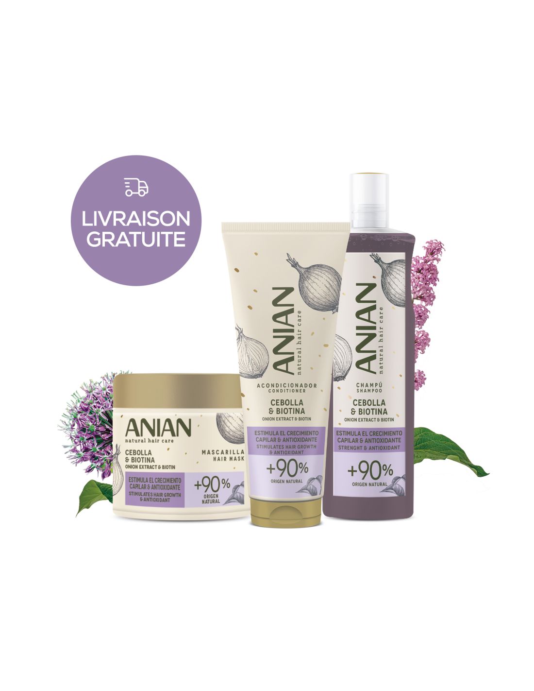 Shampooing 400 ml, Après-shampooing 250 ml, Masque 350 ml