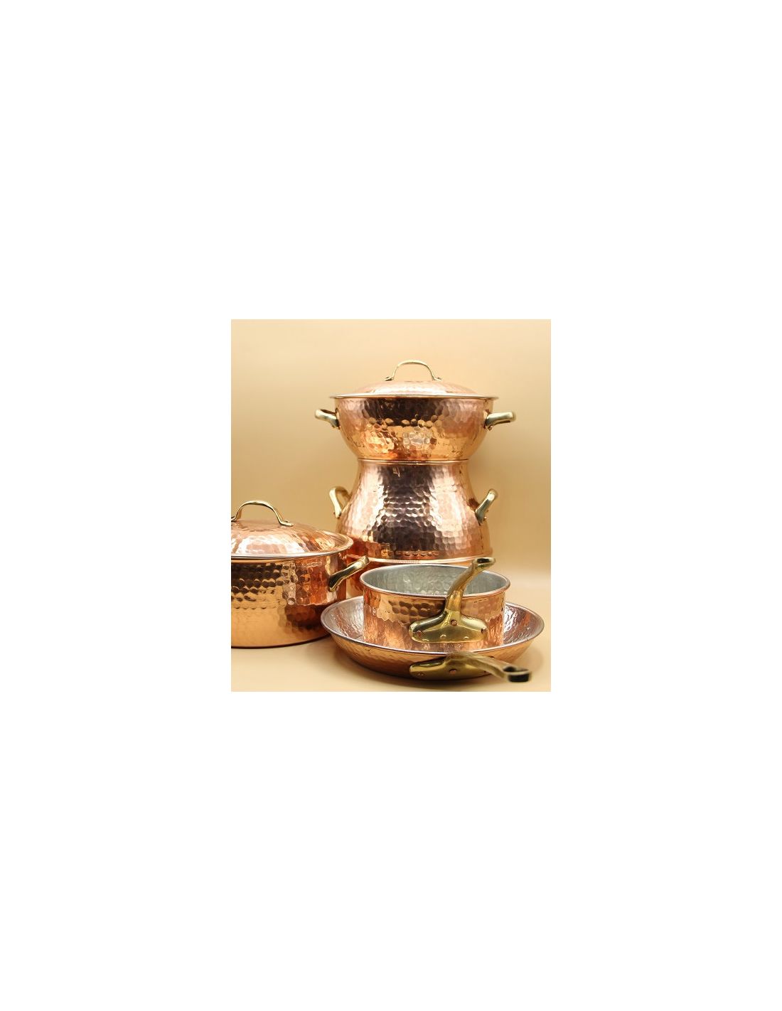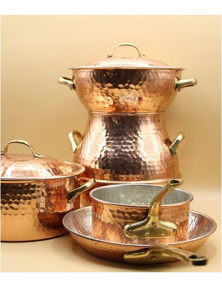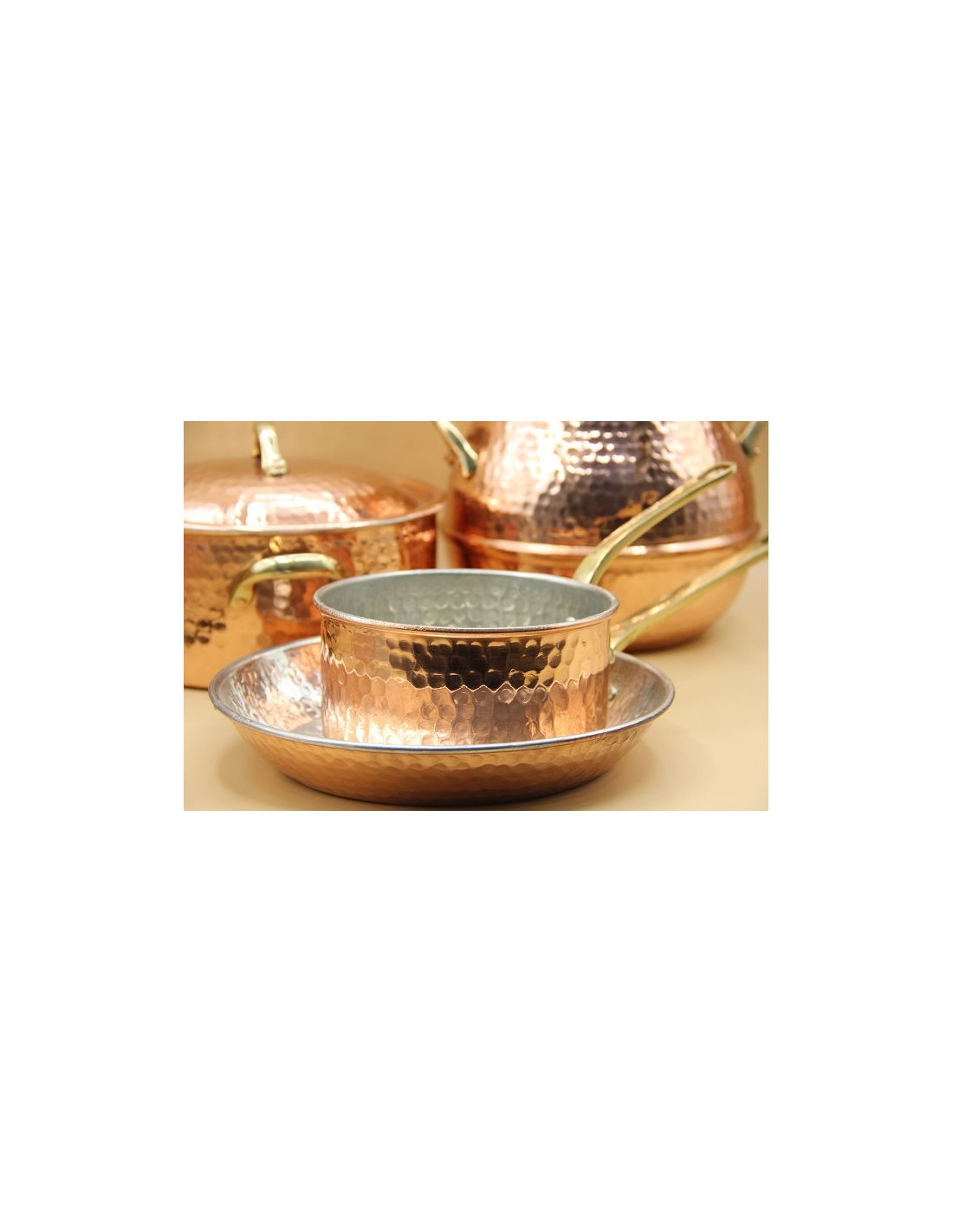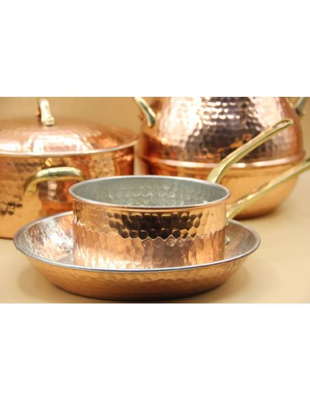 Persistent dirt and traces of oxidation are easily removed with silver stone paste, applied after washing. After a few minutes, rinse with hot water and your dishwashing detergent to restore copper to its original beautiful color.