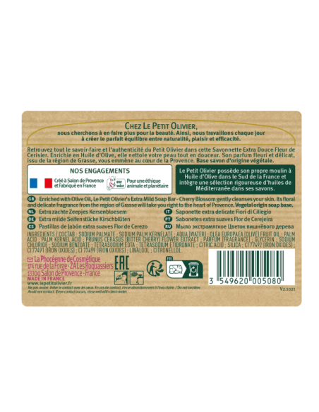 Nettoient délicatement la peau avec un parfum fleuri et subtil. Enrichies en huile d’olive, elles conviennent à tous les types de peau