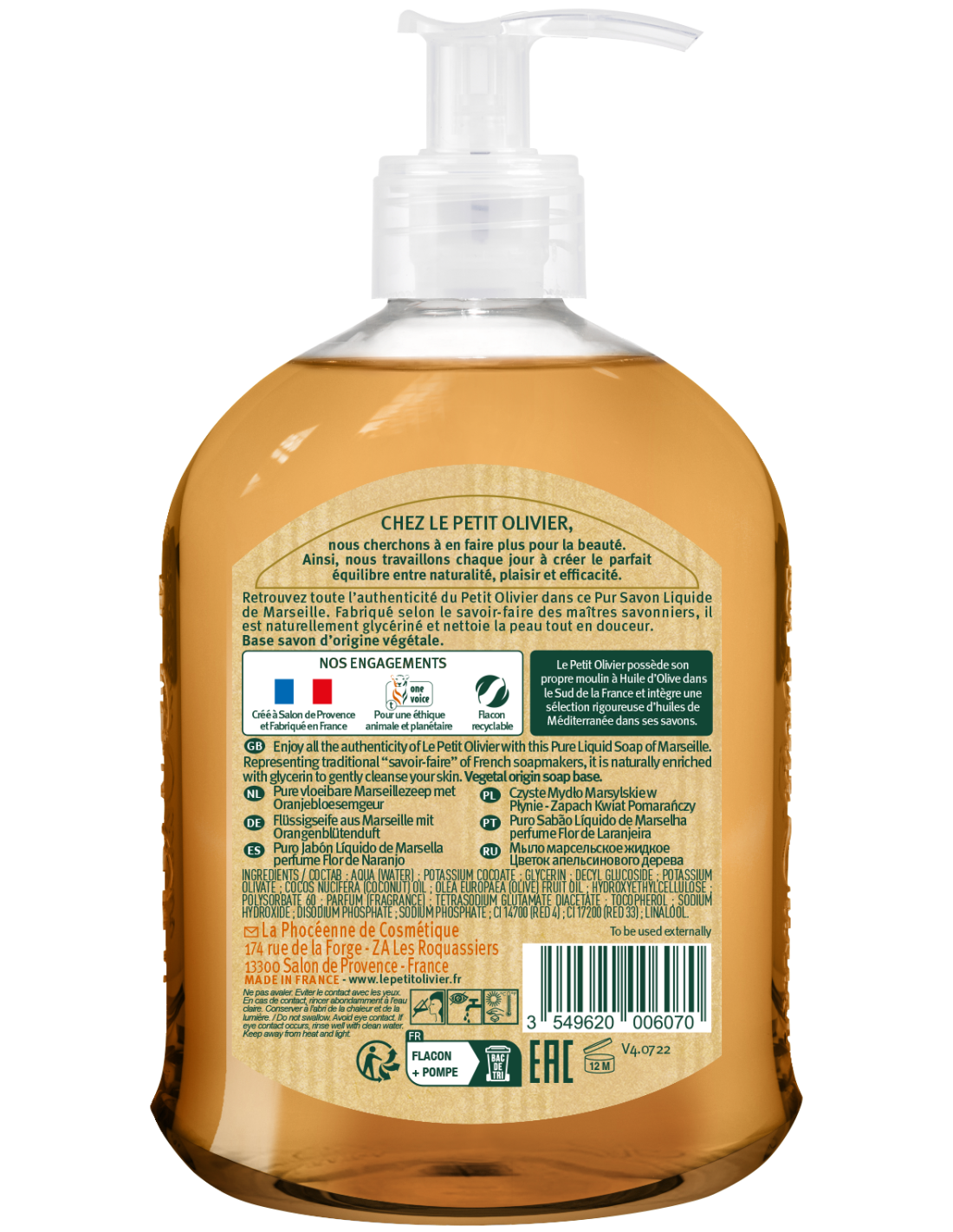 Nettoie en douceur et respecte la peau. Son parfum floral de fleur d’oranger vous transporte en Provence. Fabriqué selon la méthode traditionnelle au chaudron