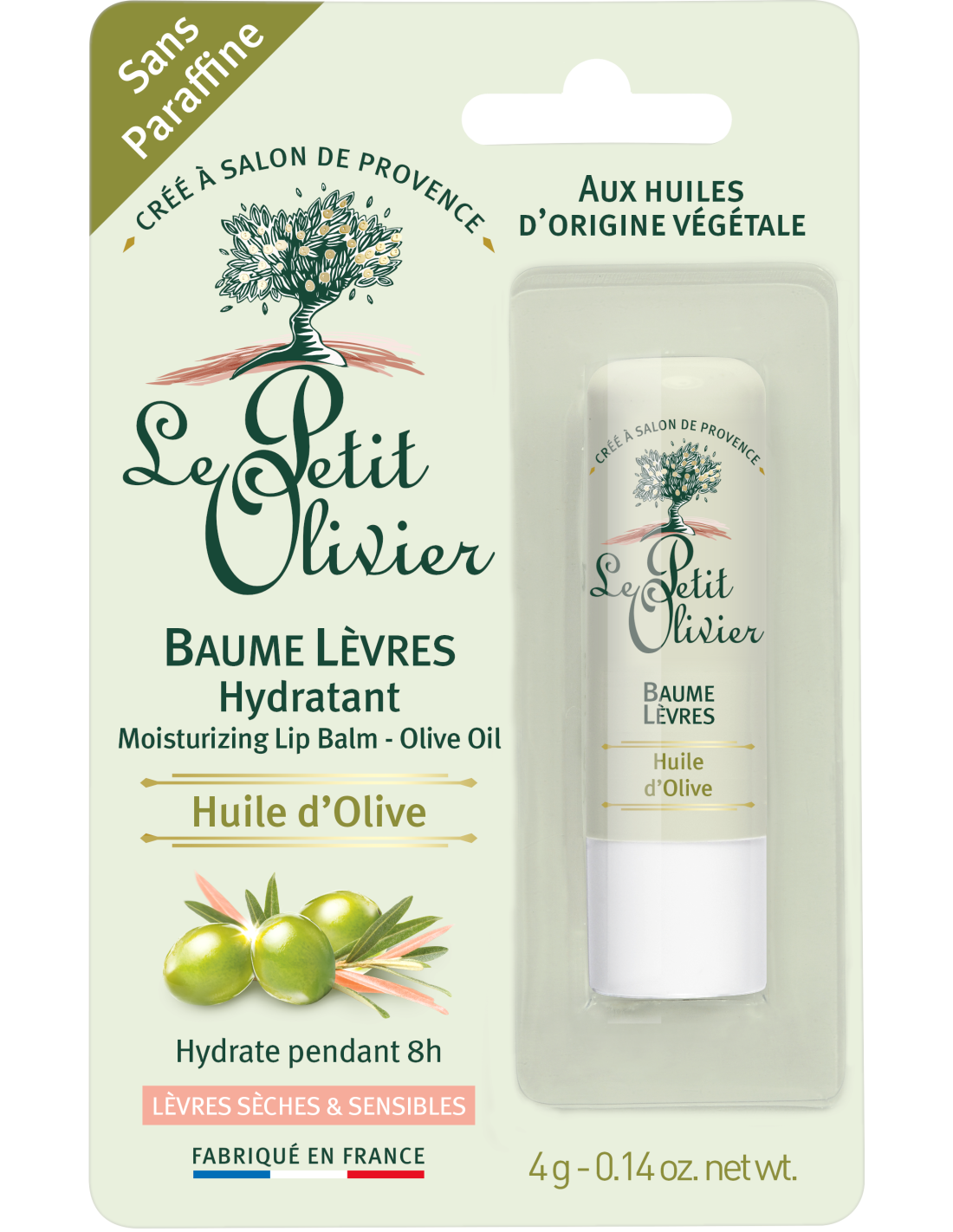 Hydrate intensément jusqu’à 8h. Enrichi en huile d’olive et beurre de karité, il protège et adoucit les lèvres sèches et sensibles