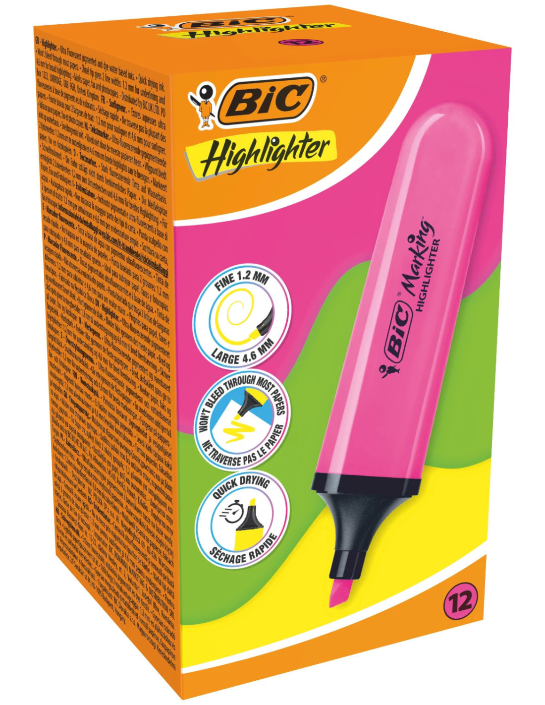 Vente achat BIC BIC Marking Flat Surligneurs avec Pointe Biseautée Modulable - Rose Fluo, Pack de 12 Tunisie à prix pas cher | Twenty
