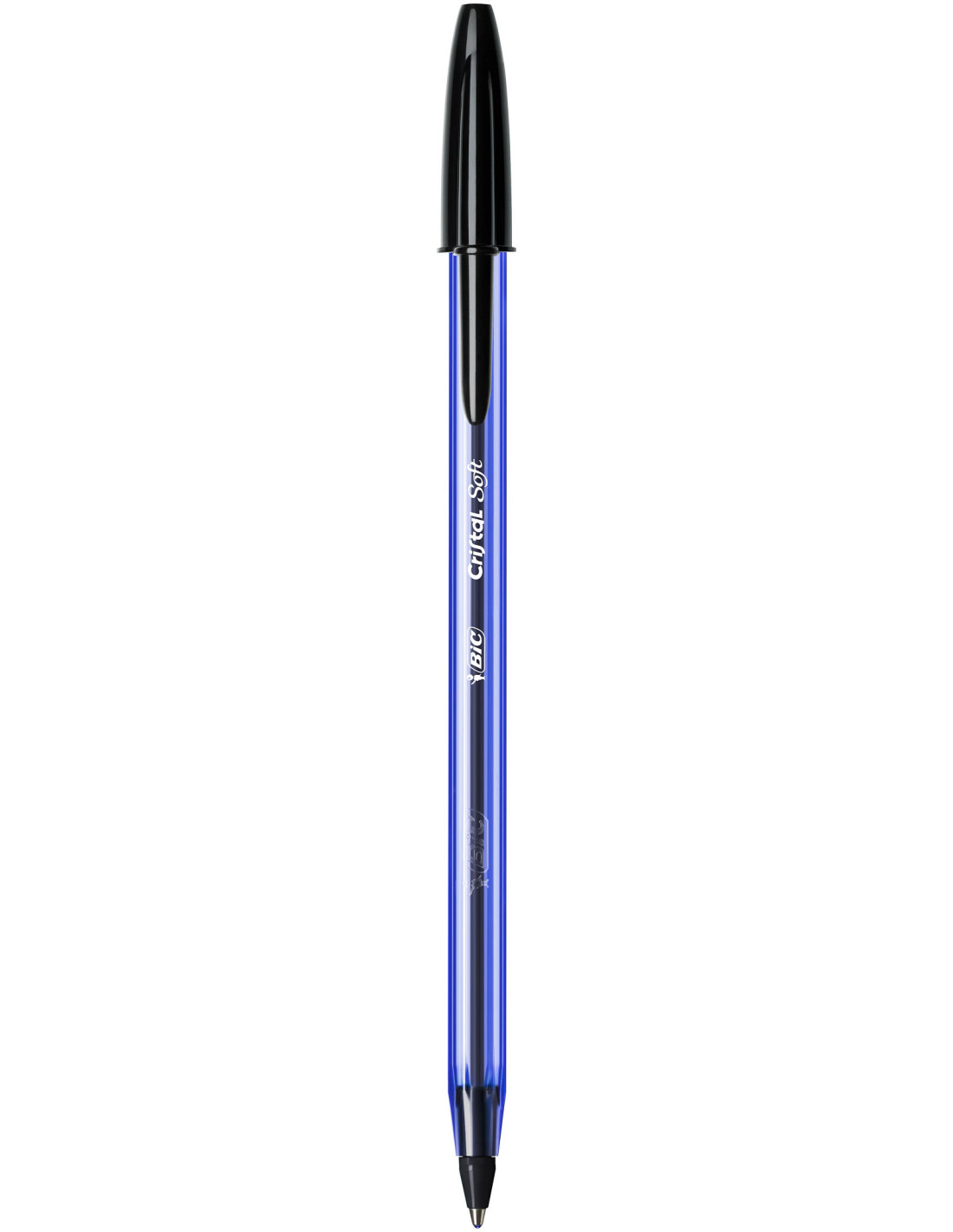 Le stylo BIC Cristal Soft a un système d'encre «Easy Glide» qui rend l'écriture 35% plus douce que la plupart des stylos-bille usuels Sa pointe large de 1,2mm (pour une largeur de trait moyenne de 0,35mm) permet une écriture fluide et facile Son corps reste toujours bleu ciel, même s'il se décline en 4 couleurs d'encre (rouge, vert, noir et bleu), capuchon et embout assortis Son joli design hexagonal est emblématique de la marque: un stylo BIC, un vrai Pratique et esthétique, son corps bleu transparent laisse voir le niveau d'encre
